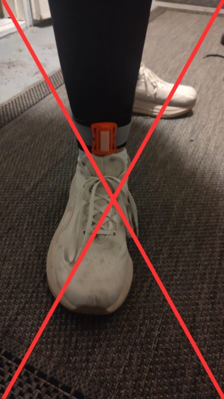Ajanottozipit tulevat juoksijoille laitettavaksi molempiin nilkkoihin. On erittäin tärkeää, että ne ovat nilkoissa oikein laitettuina. Oranssi zippi tulee molemmissa jaloissa olla nilkan ulkosivulla.