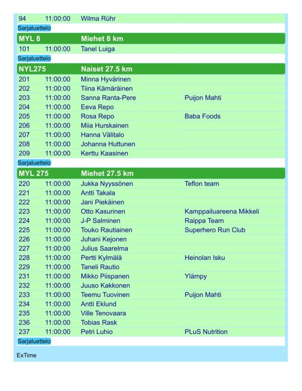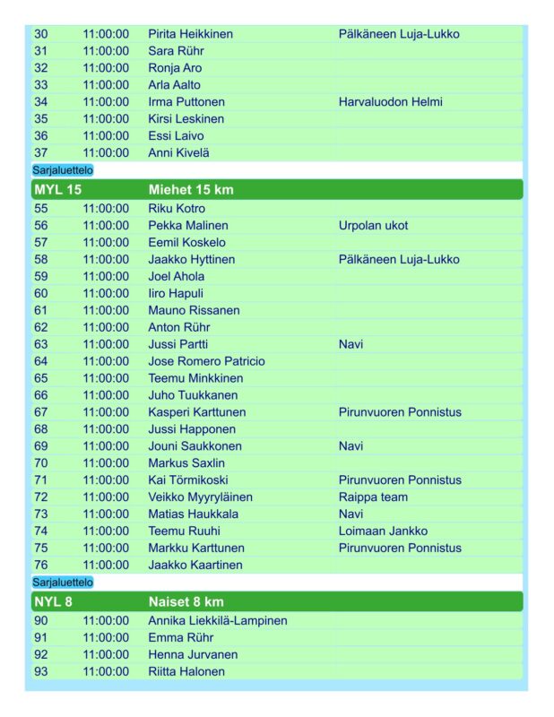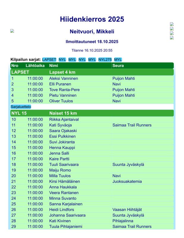 Päivitetty lähtölista kilpailunumeroilla. Sairastapausten vuoksi sarjoihin on tullut joitakin muutoksia.
